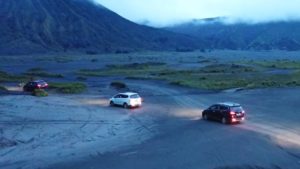 Dari lokasi dealer kami pun beranjak menuju sebuah restoran asri untuk menikmati makan siang agar tenaga bisa terisi penuh menuju titik kedua, yaitu Teras Plataran Bromo. Salah satu fitur yang dijajal pertama kali adalah sensor dan layar head unit yang terhubung ke kamera di belakang saat memarkir mobil, “Canggih!” ungkap salah seorang wartawan yang memarkirkan Corteznya. Setelah menikmati waktu kudapan dan mengisi energi, rombongan pun melaju menuju area di Bromo yang kami sebut Pasir Berbisik—mengadaptasi sebuah film nasional, diperankan oleh Dian Sastrowardoyo yang sempat sensasional di tahun 2001. Fitur keselamatan, electronic stability control (ESC) menjadi andalan saat membelah jalur berpasir ini sehingga Cortez tetap stabil melaju dan tidak oleng. Rangkaian Cortez pun berhenti beberapa saat untuk mencari spot berfoto yang bagus agar Cortez dan para pengemudinya terlihat fotogenik, walaupun sayangnya saat itu sudah menjelang malam, sehingga pencahayaan kurang baik untuk berfoto.